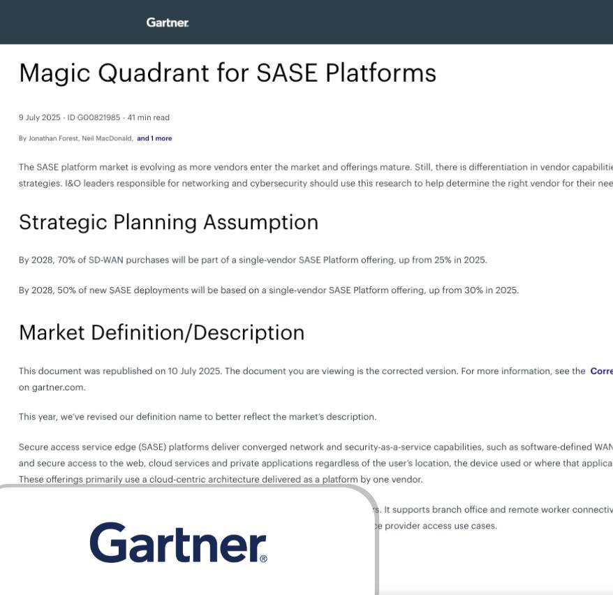 By 2028, 70% of SD-WAN purchases will be part of a single-vendor SASE Platform offering, up from 25% in 2025.